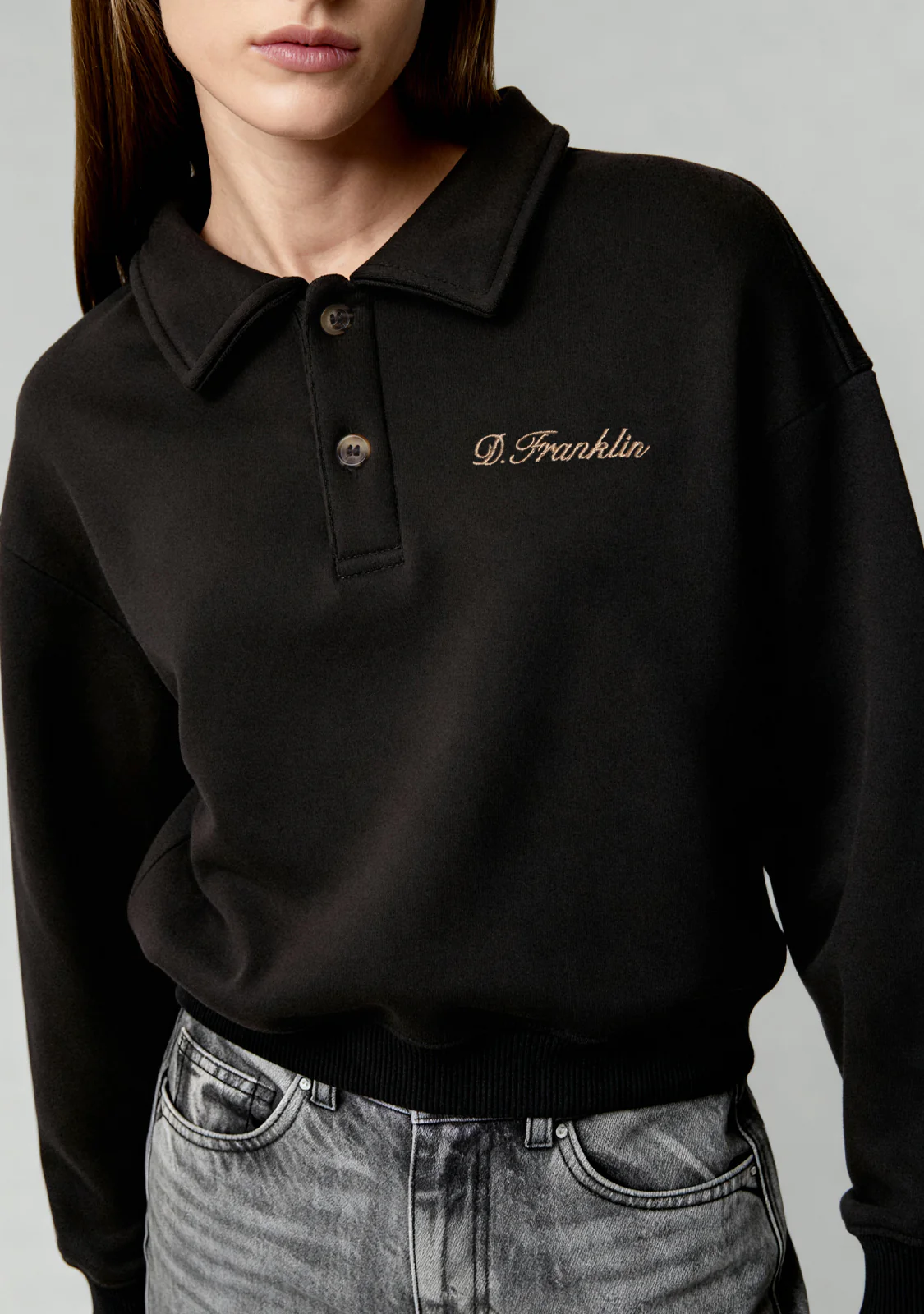 Cropped Polo Sweatshirt Anthracite es una sudadera de mujer que reinventa un corte clásico con un toque actual. Su estilo cropped y cuello tipo polo la convierten en una prenda con carácter, fácil de combinar.